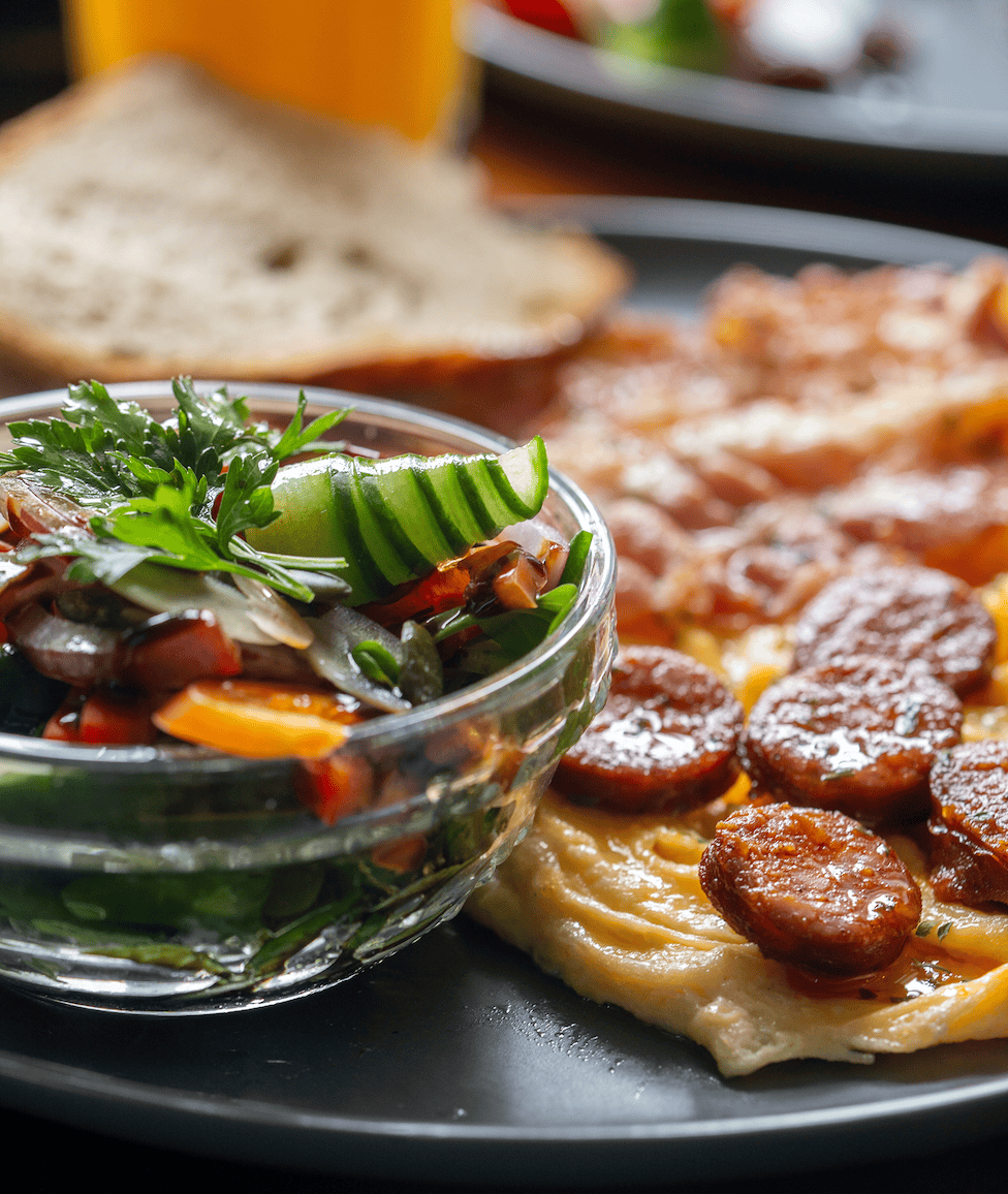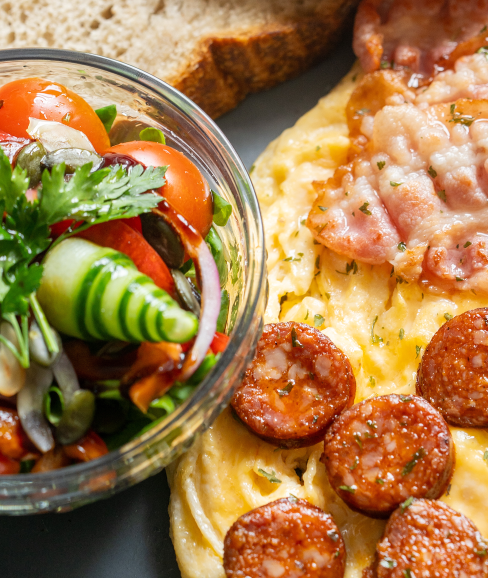 • Választható feltétek rántottához: Tojás, Mangalica sonka, Mangalica kolbász, Bacon, Sajt, Gomba, Hagyma